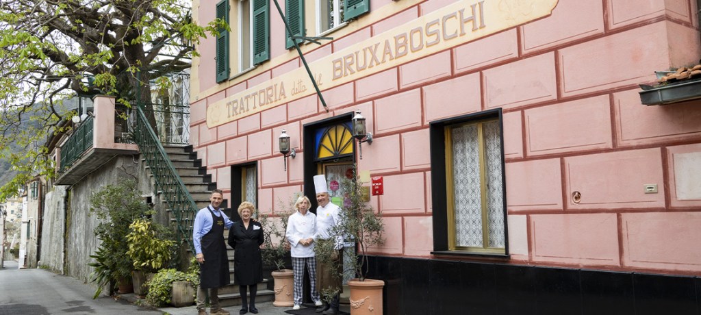 La trattoria, è stata fondata da Giovanni Battista Peirano detto “il Bruxaboschi” nel 1862 e vede la stessa famiglia ai fornelli ed in sala da 5 generazioni.