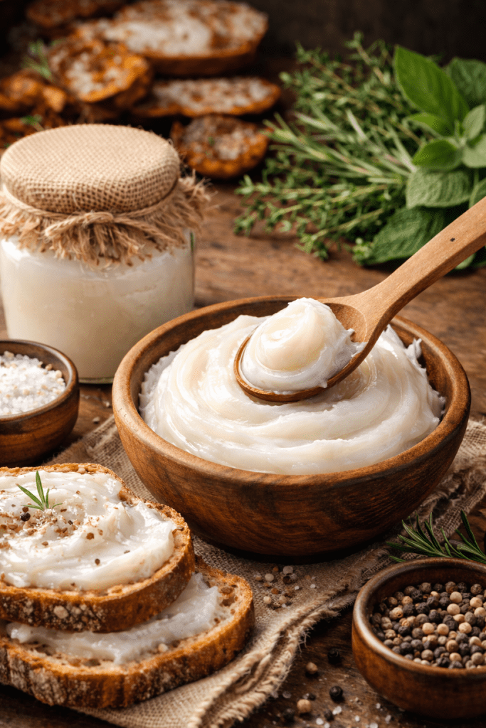 Si usa principalmente sciolto (fonde a 28°C/33°C), per salse o impasti o per mantecare (dallo Spagnolo manteca = burro).