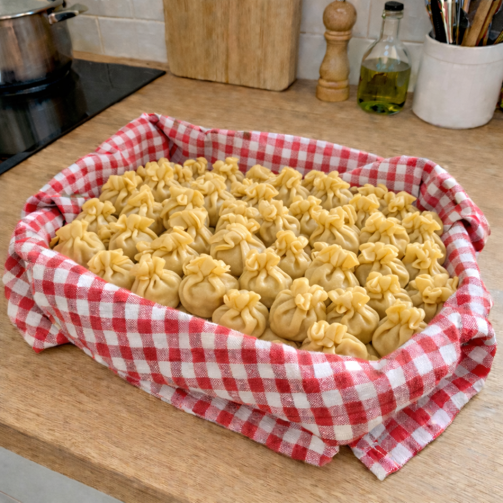 La facciamo entrare, andiamo insieme in cucina e apriamo il fagotto … dentro c’è della magnifica pasta ripiena che Mafalda ci ha fatto per ricambiare le tante cortesie.