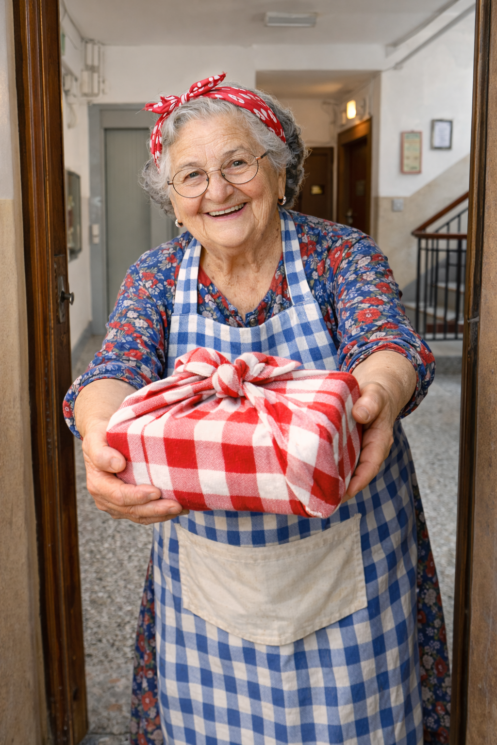 E’ Mafalda la vecchina vicina di casa che tante volte abbiamo aiutato a portare la spesa o pacchi pesanti.